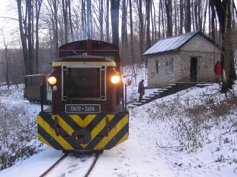 Hogy a szomorúan festő Andó-kúti állomásról vidámabb képpel búcsúzzunk: egy téli különvonat a jelet megálló előtt.