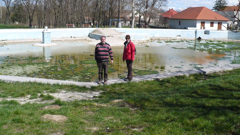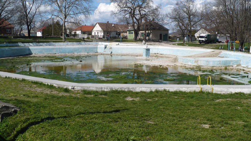 Hányatott sorsú fürdőkülönlegesség, a 19. században kezdték el kialakítani, fokozatosan fejleszteni. A virágzó fürdőhely gyógyvize a környékbeli bányászat hatására később elapadt. 1990.-ben karsztvízzel töltötték fel és évekig remekül működött. Mostanra megint felújításra szorul, üzemeltetése 2013. tavaszán - amikor a képek készültek - még kétséges volt. Az első képen „egy barátnőmmel” vagyok látható. Nem tudom hogyan lehetne kevésbé kétértelműen említeni Zoli barátom feleségét Katit, akikkel olyan sokat nyaraltunk már együtt – és remélem még sokszor fogunk is ?