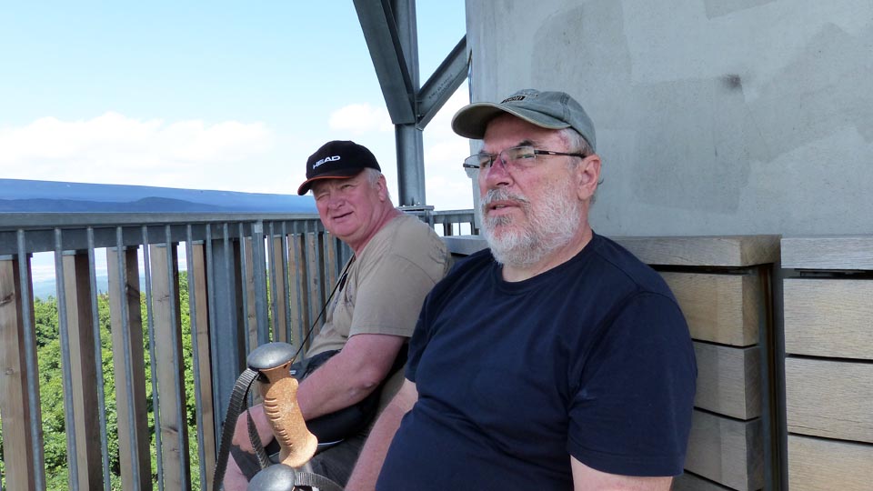 Öregedvén az ember sokféle furcsaságra képes. Például olthatatlan vágyat érez, hogy újra lássa azokat a helyeket, ahol egykor jól érezte magát - no meg hajlamos túlbecsülni azt hogy mire képes. Így történt hogy 2016 nyarán, a Börzsönyben nyaralva beiktattunk egy túrát a Csóványosra - úgy mint 1980-ban. Hétköznap lévén a Cseresznyefás-parkolóból indultunk (hétvégeken mikrobusz jár a Nagyhideg-hegyre, a táv felét és a szintvonalak kétharmadát megtakarítva), a "piros X" jelzéshez ragaszkodva, amely sífutó út lévén elvileg - de nem gyakorlatilag - elkerüli a meredekebb lejtőket/kaptatókat. Sajnos ezek az utak helyenként nagyon elhanyagoltak, sokszor kétméteres csalán, máshol bedőlt fák színesítették a terepet. Némi megkönnyebbülés volt amikor felértünk a Magas-Tax festői rétjére és szélén évek óta pusztuló, egykor jobb napokat látott turistaházhoz. Ez ugyan elvileg félút a Csóványosig, de ez csak csalfa illúzió... Kies, jól kitaposott ösvény várt ránk - jó hosszú és makacs emelkedőkkel. Néha azért vigaszt nyújtott a festői kilátás, no meg a sziklaalakzatok - köztük mindenek felett Sisa Pista, a nógrádi betyár barlangja, ami függőleges odú lévén nem lehetett túlzottan komfortos a rablásaiból dús zsákmánnyal visszatérő és minden szép lány szívét megdobogtató lakójának. Végre felérve a szépen felújított kilátóból lenyűgöző panoráma nyílt, bár előbb egy kicsit magunkhoz kellett hogy térjünk. Nem büszkélkedhetünk el vele, hogy a 6-7 km-es, igaz, legalább 400-500 méter szintkülönbséget rejtő táv több mint három óránkba került. Meg arra se' vágok fel, hogy a jó két és fél órás lefelé vezető út második felében megfogalmazódott bennem, hogy erre az útra egyhamar aligha vállalkozom.