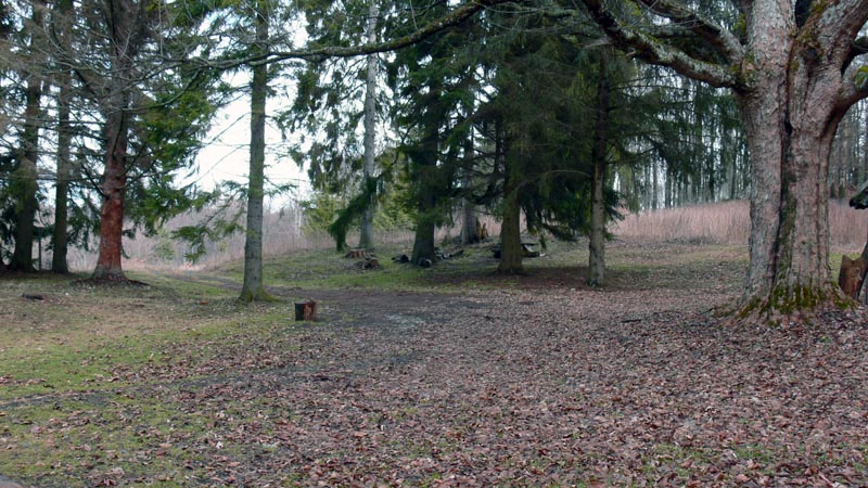 Középen a fenyők alatt a szalonnasütő, ahol az ominózus macskasimogatás esett