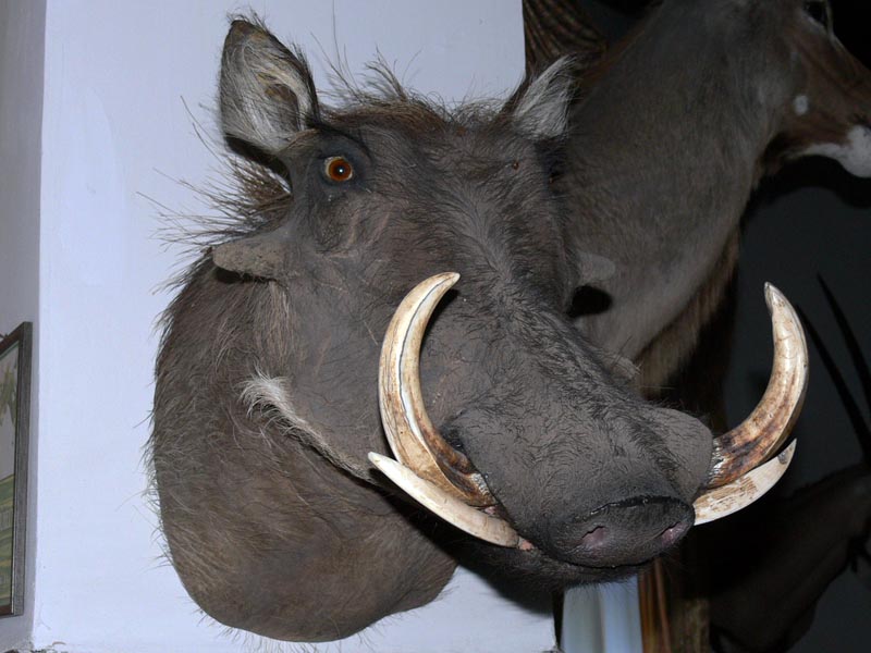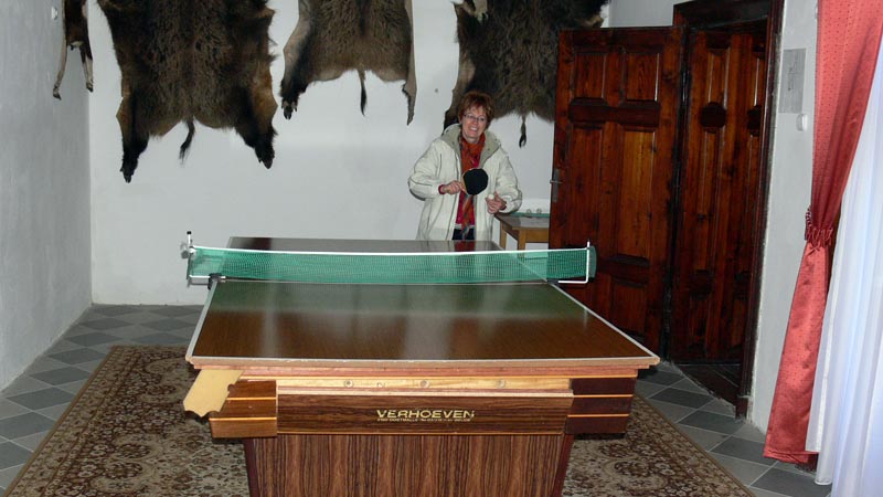 A csigalépcsőn lemegyünk két szintet - az Afrika-terem alatt járunk. A lépcsőházból - átverekedve magunkat a mindenhol bőven tenyésző egzotikus trófeákon - egy kisebb szobába jutunk ahol ping-pong asztalt állítottak fel. Jobban megnézve ez nem is egyszerűen ping-pong asztal, a márka elárulja hogy biliárdasztalnak készült, csak gondos kezek ping-pong "adaptert" applikáltak hozzá. Innen nyílik a "titkok titka, a rémek réme" a rejtekajtóhoz vezető lépcső, mellette - sajnos nem látszik - tűzifát tároló polcok.