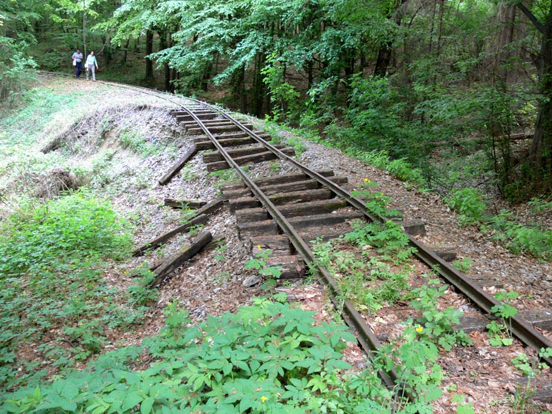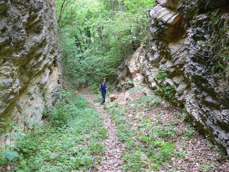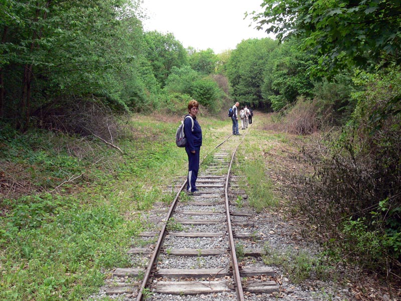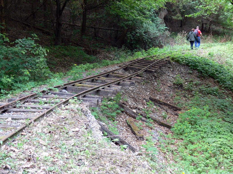 Vonatozás a Bükkben, II. rész. Mivel a vonat innen, Ortástetőről az elmosott töltés miatt nem mehetett tovább, gyalog indultunk el a sínek mentén. Így értük el a szakasz egyik legnevezetesebb pontját, az '50-es évek végén kialakított szikla-átvágást, ami egy gyötrelmes hajtűkanyartól szabadította meg a vonalat. Gyalogosan bejárva is látványos volt az embervágta szurdok, az alján kanyargó sínpárral. Nem én lettem volna, ha az átvágott, régi nyomvonalat ne próbáltam volna meg felderíteni - ami nem is volt különösebben nehéz. Egészen az Andó-kútnál lévő kis állomásépületig, no meg nagyon hangulatos, kis tavacskával ékesített pihenőhelyig sétáltunk a síneken - erről korábban már mutattam képeket. Innen visszagyalogoltunk a vonathoz, amely "hazavitt" minket Miskolcra - az egész napos programot bezárva. Idén (2014) októberében örömmel olvastam, hogy ismét vonatot indítottak, mégpedig Mahócáig, mivel sikerült a pályát odáig rendbe hozni.