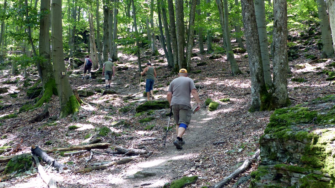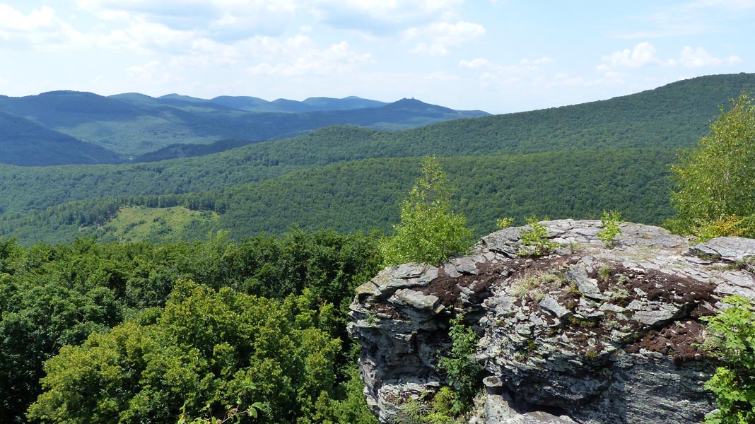 Tavaly (2013) ősszel csúfosan kihagytuk ezt a látványosságot, örülök hogy ilyen hamar sikerült pótolni. A Rostalló nevű egykori erdészeti központból indultunk a majd' kétórás "csúcstámadásra". Az utolsó nekirugaszkodás előtt remek pihenőt kínált a nyírfacsoportokkal tagolt lélekvidítóan szép Mlaka-rét. A Sólyom-bércen a sziklamászók által is kedvelt sziklákról a Zemplénben majdhogynem szokásos, mély sóhajtásokat keltő panoráma fogadott - és egy jó órán át el sem engedett minket. Amerre a szem ellát jellegzetesen kúp alakú, vulkáni eredetű hegyek, a közeliek zöldek, a távolabbiak kékbe hajlóak. Középen az egyiken (Vár-hegynek hívják, ugyan mi másnak is lehetne) koronaként Regéc várának romja. A "közeli" kép is a Sólyom-bércről készült - jól dolgozott a 600-as teleobjektív, csak a kék fátyolt kellett Photoshoppal eltüntetni. A várról legközelebb többet mutatok, mivel természetesen oda is elzarándokoltunk.