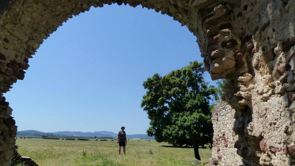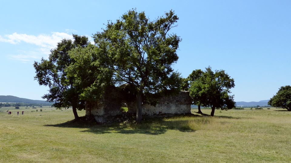 A júliusi kánikulában mikor, ha nem éppen délben, a köveskáli templom odakúszó harangszavától kísérve bandukol az ember a gazos mezőn, hogy eljusson egy újabb hőn vágyott helyre ? Ez történt velünk, már megint. A Kővágóörstől erre vezető úttól jó félóra sétára esik az egykori falu, Sóstókál helye. Árpád-korabeli falu volt, az Örs-nemzetség alapította és a törökök pusztították el a 16. században. Apró facsoportok tagolják a mezőt, szinte mindegyik tövében, a gyökerek között kövek, téglák tanúskodnak, hogy itt valaha falu állott. Épület-maradványnak már csak a templom romja tekinthető, igaz, ez különösen festői ebben a környezetben. A mező közepén a csendben az embert a képzelete szinte kiragadja a jelenből és a jó négyszázötven éve felégetett kis faluba repíti. A fák árnyékában hűsölés helyett továbbindulok, hogy megkeressem a Pusztapalota-ként említett romot is, ami egy tehetősebb földesúr, vagy egyházi személy lakhelye lehetett. Jó fél óra míg megtalálom a bozót-szigetek labirintusában - pedig csak 100-150 méterre van a templomtól. Mikor megtalálom, elfog az számomra jól ismert hangulat, amit meg sem próbálok Neked elmagyarázni - vagy érzed Te is ha ilyen helyen jársz, vagy hiába is mesélném.