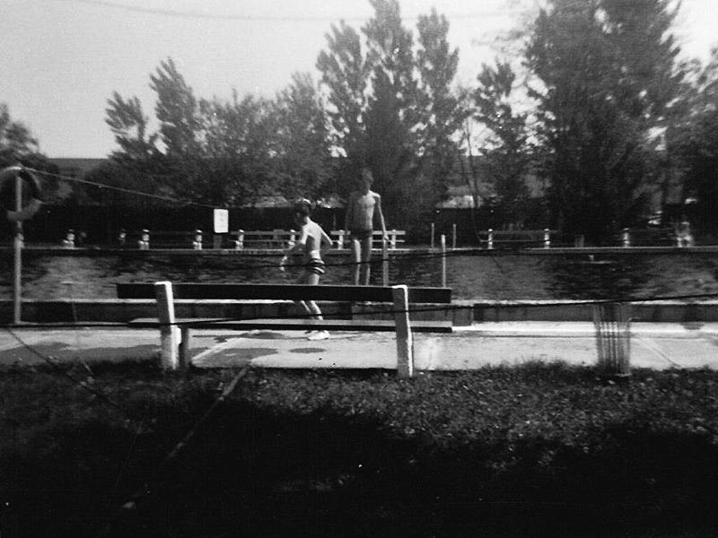 A medence körül körben lábmosónak titulált elvezető csatorna futott. Ha nem volt benne víz, az érdes betonfelülete leszedte a bőrt a talpunkról, ha meg volt benne, akkor hatalmasat lehetett esni a csúszós-nyálkás alján.